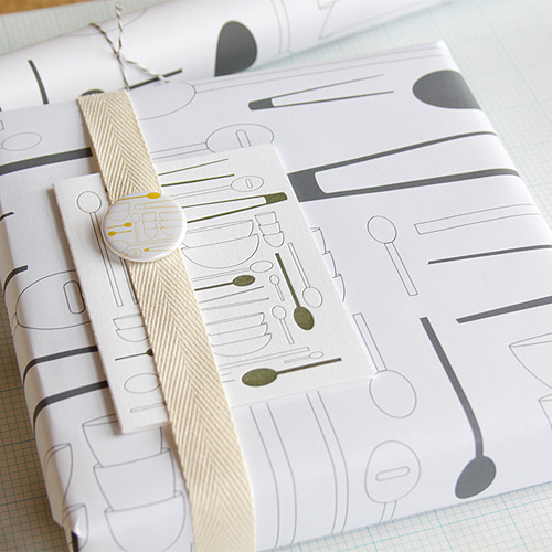 INK+WIT gift wrap. Try out 1 of each in the assortment! Or, any of thees other designs come three sheets to a roll. Fox + Friends in Paris, Cuillère, Wooded, and Walnut